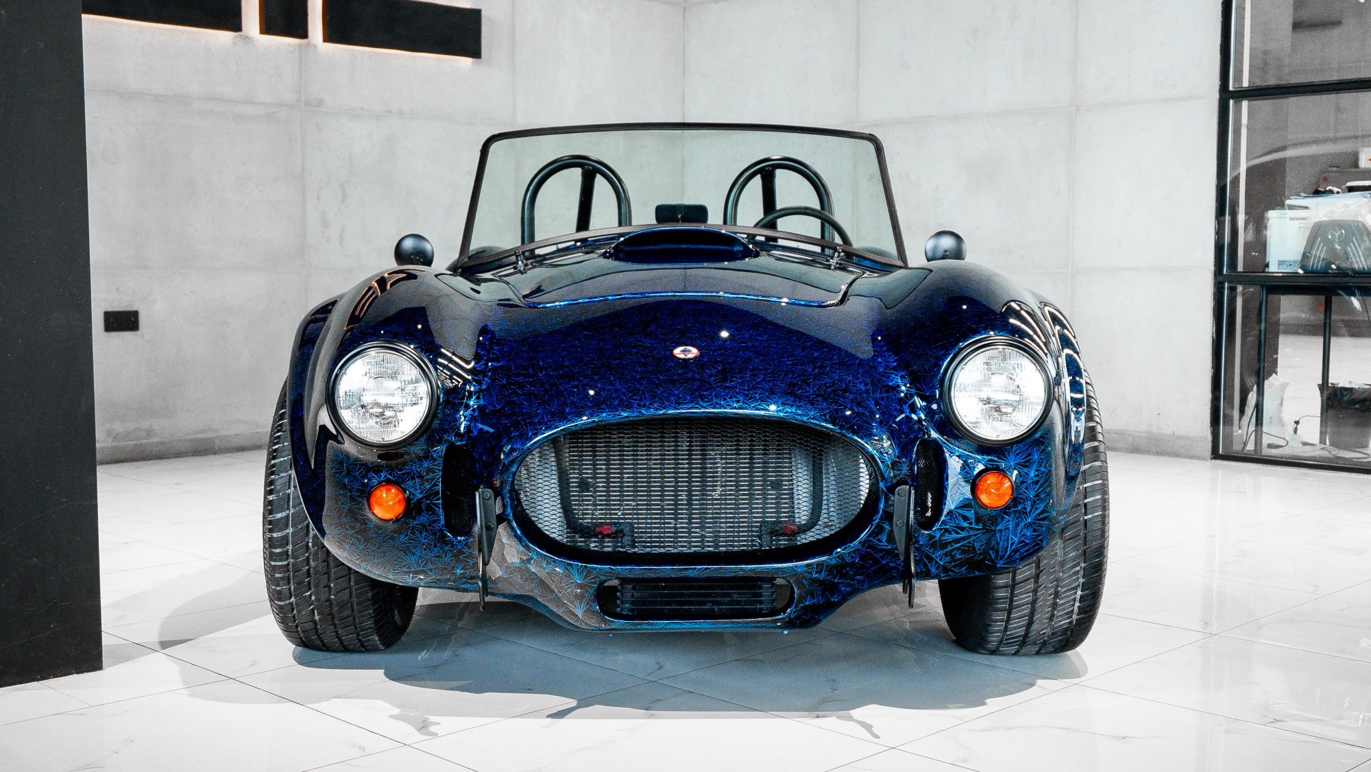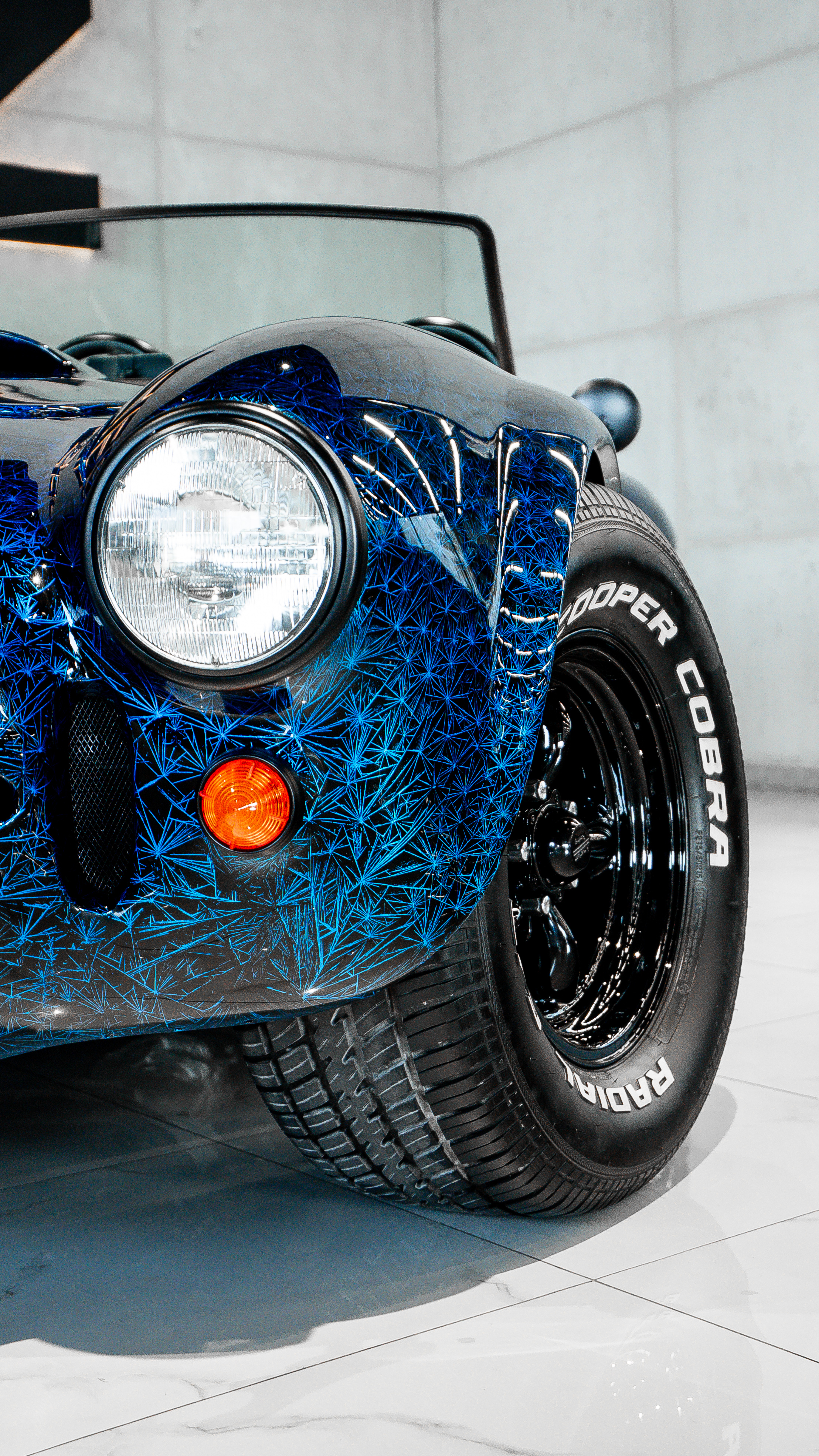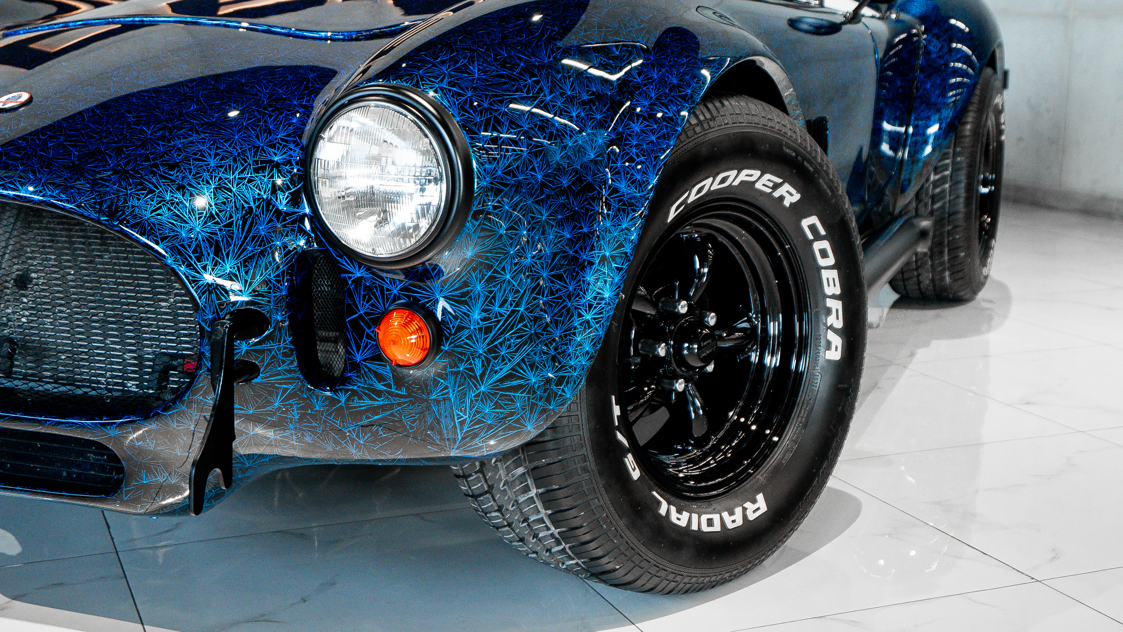 Some projects are deliberately avoided by most workshops due to their technical complexity. This Ford Cobra repaint was one of them. The task was to execute an exclusive paint design featuring a complex crystal-like visual structure embedded within the paint itself.