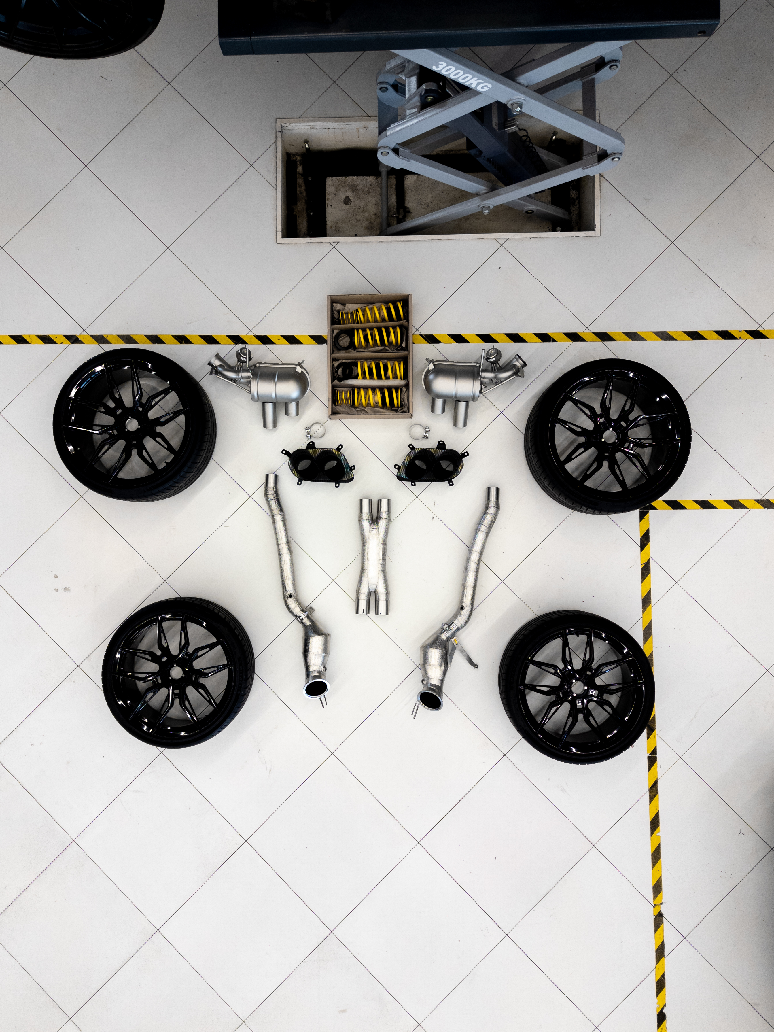 The centerpiece of the project is a full Novitec exhaust system, designed to improve exhaust flow and deliver a sharper, more expressive sound profile. The system enhances throttle response while maintaining acoustic refinement appropriate for a high-end performance vehicle.