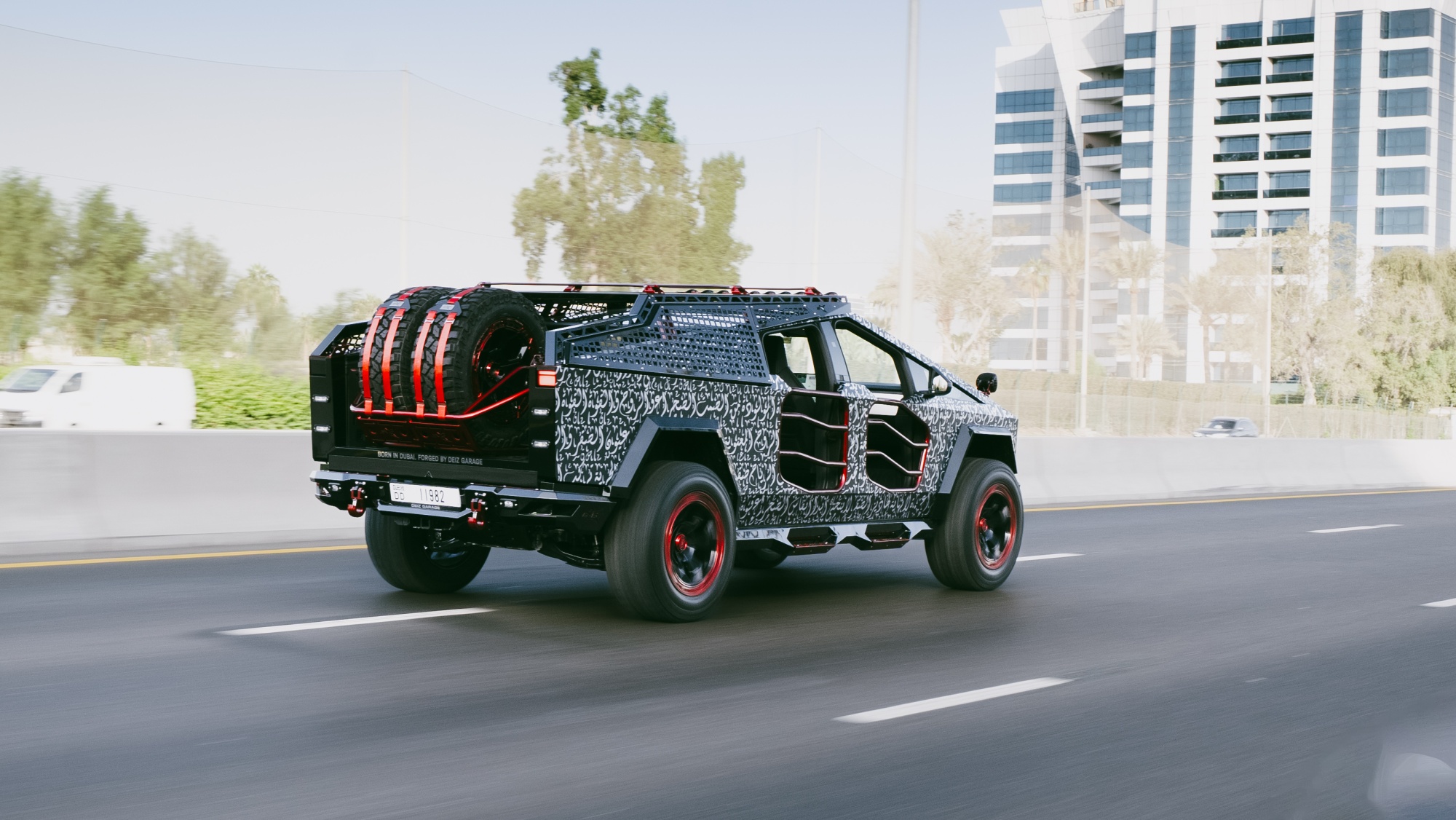 This Tesla Cybertruck project represents a pinnacle of wrapping as automotive artistry, pushing the discipline beyond color change into the realm of layered, hand-crafted design. The concept centered on integrating traditional Arabic calligraphy with the Cybertruck’s futuristic form, requiring a sophisticated multi-layer installation process to achieve visual depth, stark contrast, and legible artistry across the vehicle’s angular planes.