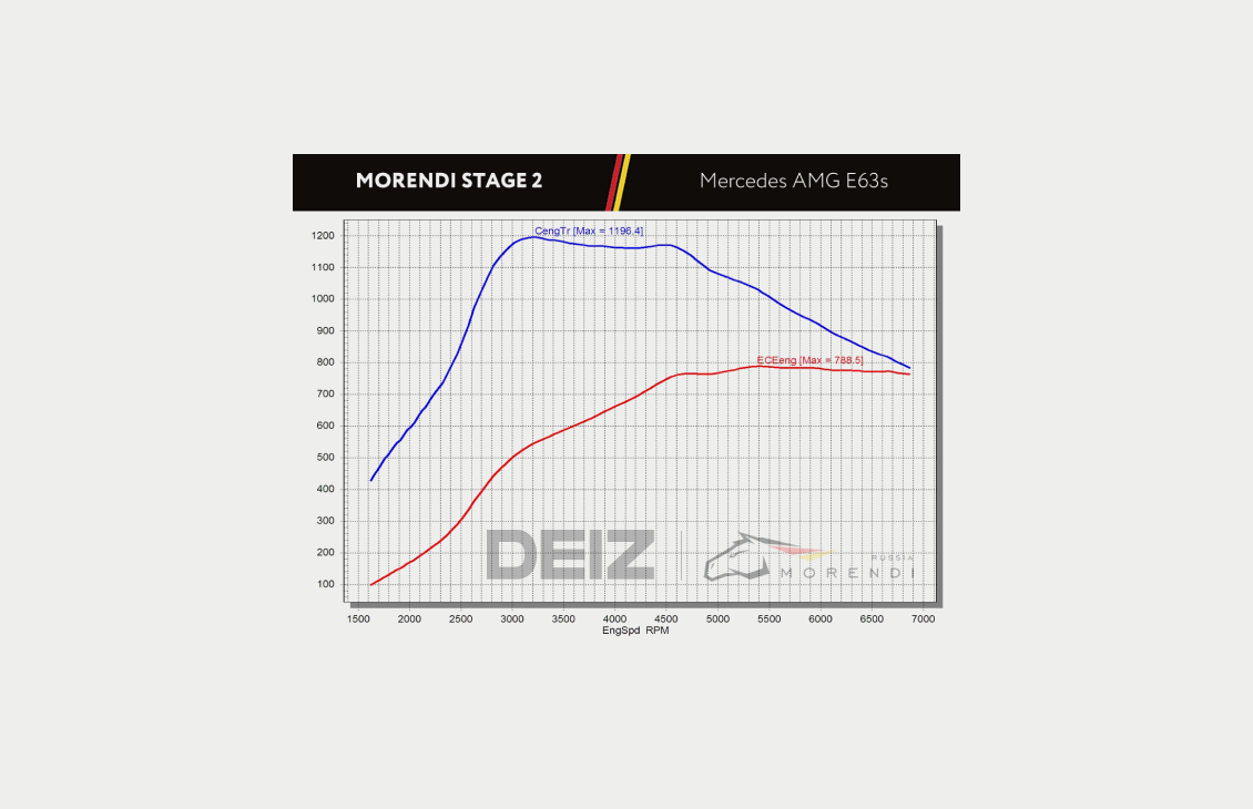 Unleash the full potential of your Mercedes E63 with our exclusive Stage 2 performance package at DEIZ GARAGE. Our custom tune transforms your E63S AMG into a powerhouse, delivering an impressive 820+ HP and 1100+ NM (811+ lb-ft) of torque. This comprehensive upgrade represents a significant leap beyond Stage 1, offering precision engineering tailored to your vehicle's M177 biturbo engine.Performance Enhancement