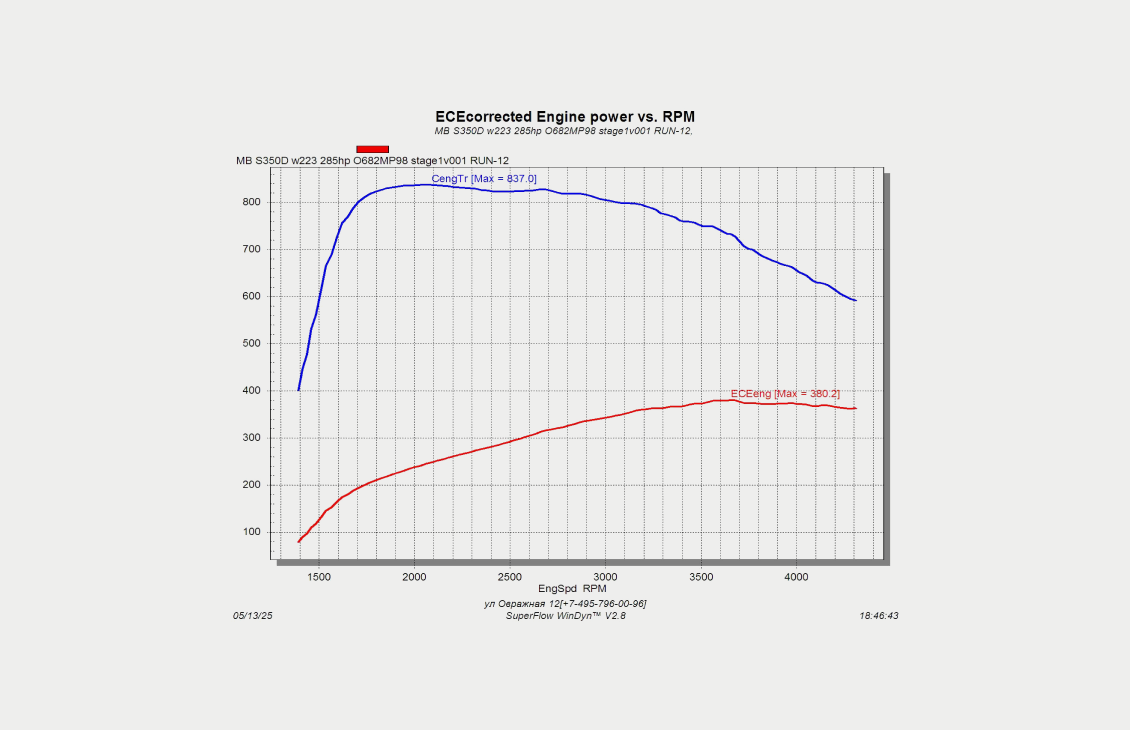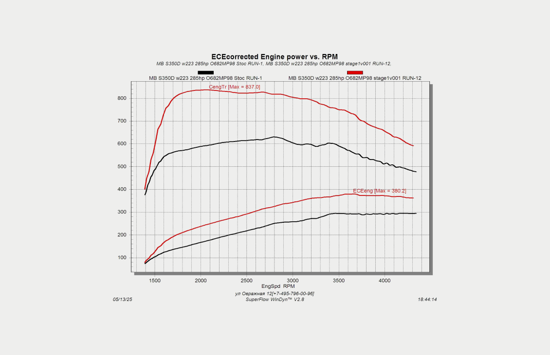 The Mercedes-Benz S63 features the formidable M177 V8 biturbo engine—a solid workhorse with few downsides. Our AMG Stage 1 software optimization extracts maximum performance from this exceptional powerplant. When you run a Stage 1 tune at our facility, you're investing in professionally developed engine management that respects the integrity of your Mercedes-AMG vehicle while dramatically improving its capabilities.Our Stage 1 package elevates your S63 AMG from its factory specifications to over 780 horsepower, with torque figures reaching impressive levels measured in Nm. This whp increase is achieved through meticulous calibration of the turbochargers and optimization of fuel delivery, ensuring seamless power delivery across the rev range paired with the AMG Speedshift MCT transmission.