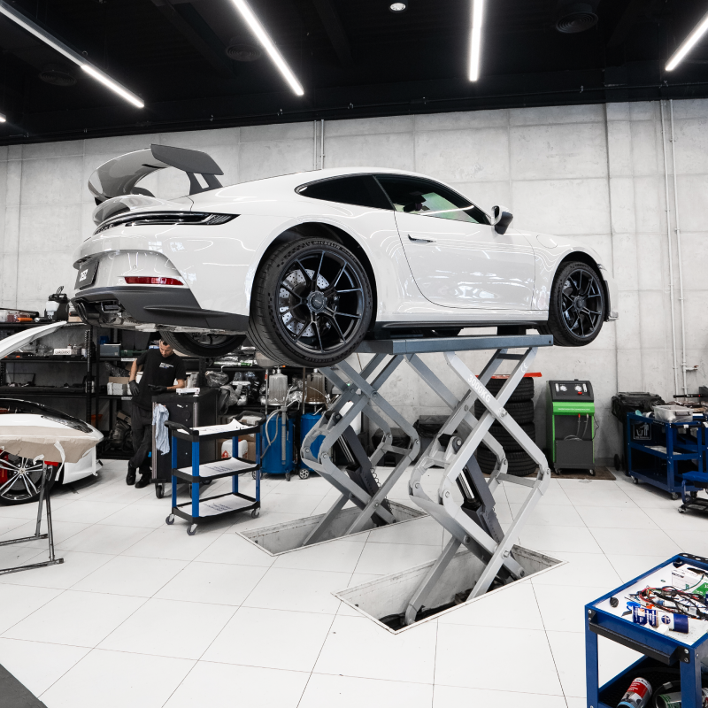 Professional installation of performance parts, suspension setup, alignment, and system adjustments.